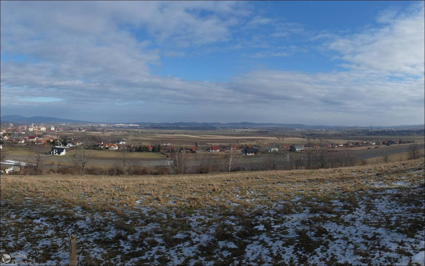 Początek wycieczki to stacja kolejowa “Kalwaria Zebrzydowska Lanckorona”, 25.01.2021 rok o godzinie 22:40, następnie przesiadka do pociągu w stronę Wrocławia, a we Wrocławiu gorączkowe poszukiwania peronu nr.6, a następnie dojścia do niego. Specyfika tego peronu jest taka że widać go, ale dla osoby z zewnątrz dotarcie w miejsce odjazdu pociągu stanowi nie lada zagwozdkę, ponieważ znajduję się ono już poza dworcem. Tym bardziej gdy czas na przesiadkę to ledwie 10 minut. Aczkolwiek akcja zakończyła się sukcesem i na miejsce początkowe tj. Bartnica dotarłem od godzinie 6:47. I tutaj lekkie zdziwienie, ponieważ stacja spowita była w ciemnościach. Delikatnie wybiło mnie to z rytmu, dlatego że na mapie turystycznej początkowa trasa, wyznaczona została lasem, lub na jego skraju, co w krainie dzikich zwierząt może stanowić lekkie zagrożenie. Na szczęście opadły mgły i już po 15 minutach zrobiło się w miarę jasno, a szlak stał się widoczny. Niestety z powodu wałęsających się niezbyt przyjacielsko nastawionych bezpańskich psów, musiałem lekko zmienić trasę ( zrobić małe okrążenie miejsca w którym one się znajdowały ).