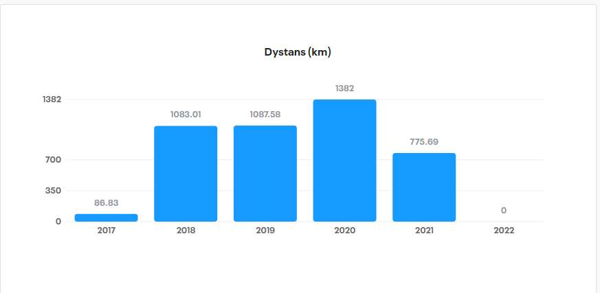 Jeśli chodzi o aktywność sportowo – wycieczkową to kilometrowo porażka, co widać na załączonym obrazku. Prawie 600 kilometrów mniej o roku 2020 i praktycznie najmniej od roku 2018, pomijam 2017 bo to był rok przemiany.
